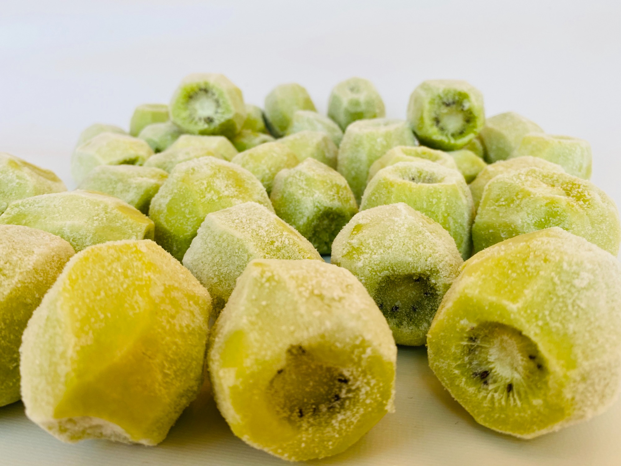 Ürünlerimizde yüksek şeker içerikli Hayward çeşitleri kullanılmaktadır. Dondurulmuş kivilerimiz; ½ kesim, ¼ kesim, lokma ve dilim şeklinde hazırlanmakta, karton koli içinde 15 kg’lık nylon torbalarda ambalajlanmaktadır.